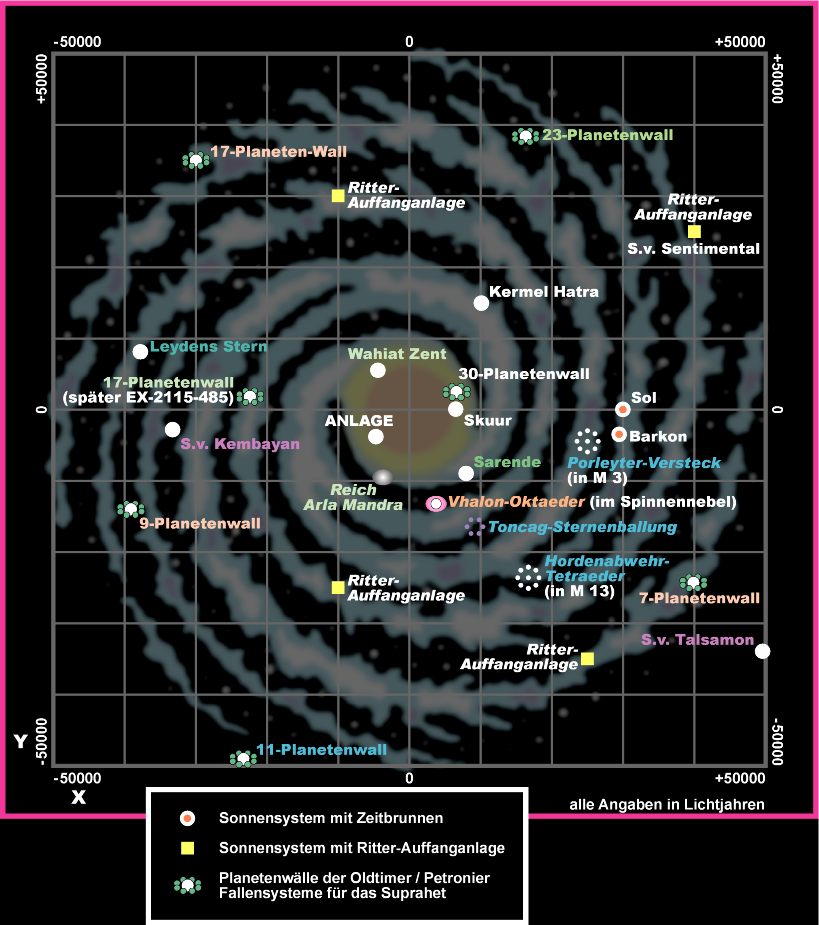 Von den Petroniern errichtetes künstliches Fallensystem für das sternefressende Suprahet, das nicht mehr zum Einsatz kam, da die Falle bereits im 17-Planeten-Weltenwall (später EX-2115-485) zuschnappte. |